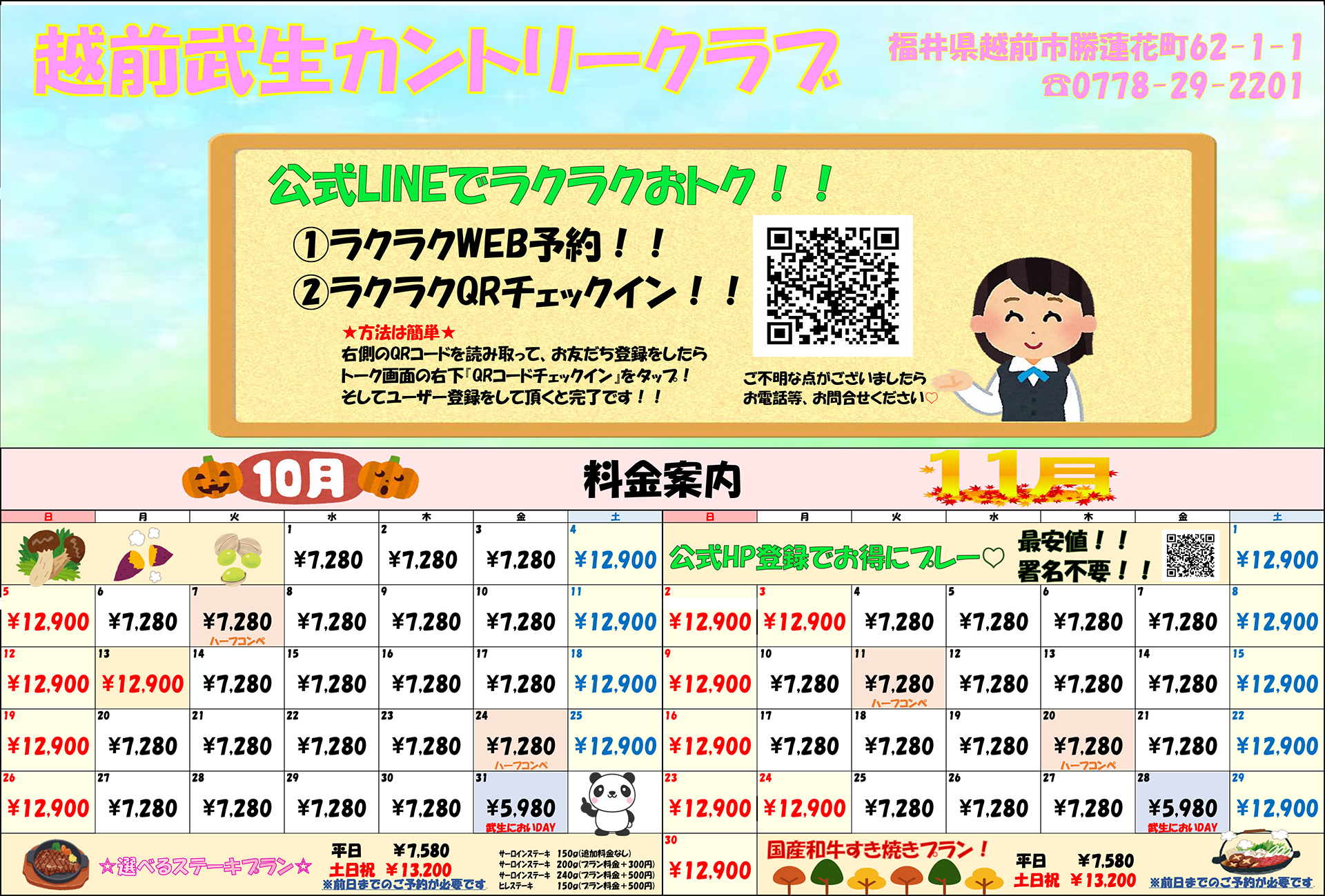 平日 | 5,840円 | 7,280円 | |||