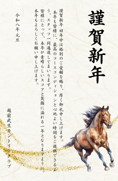 ベージュ 金色 和風 水彩画 2026年 午年 馬 ビジネス 年賀状
