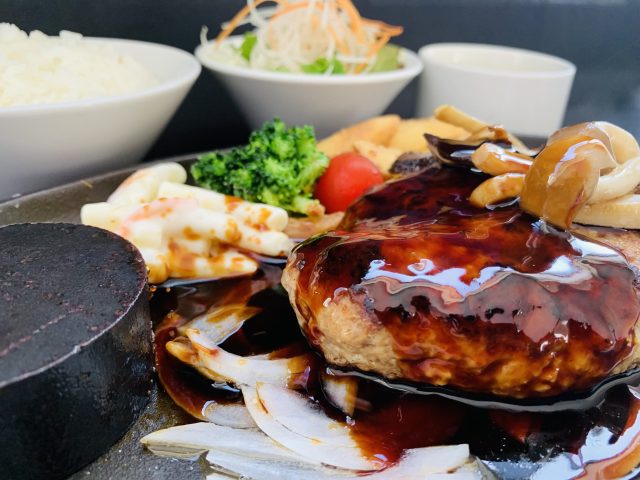 ジューシーなハンバーグに照り焼きソースの甘さが最高!