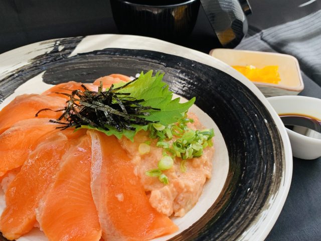 1つの丼で2つのサーモンの味を楽しめる二色丼♪
