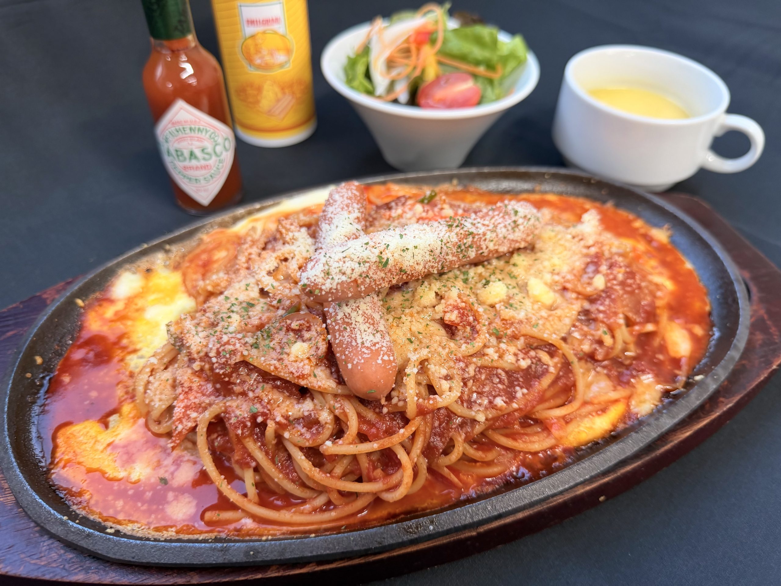 ”粗挽きソーセージとたっぷりチーズ” の 鉄板ナポリタン