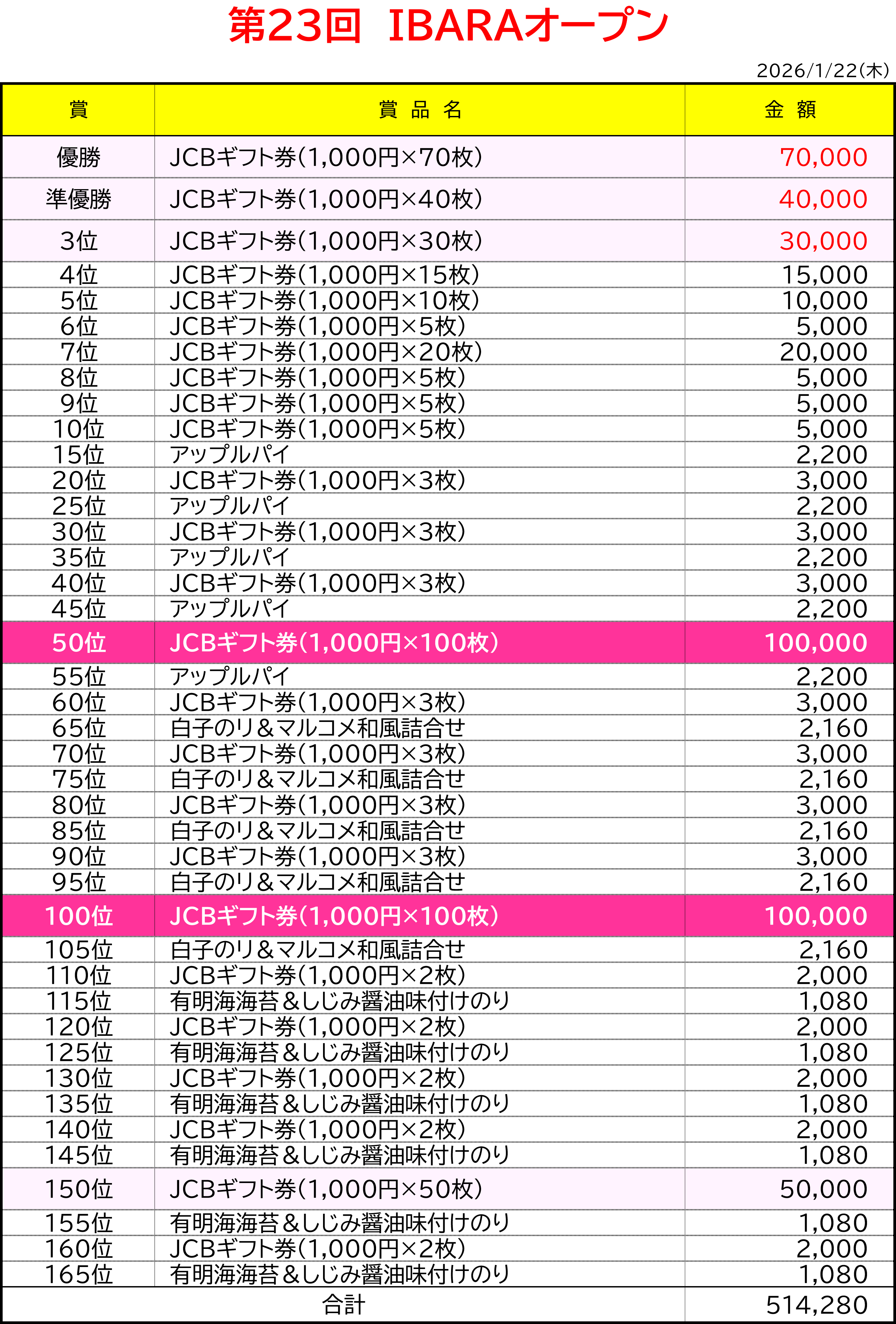 1/22 (木) 第23回 IBARAオープン 予約受付中!