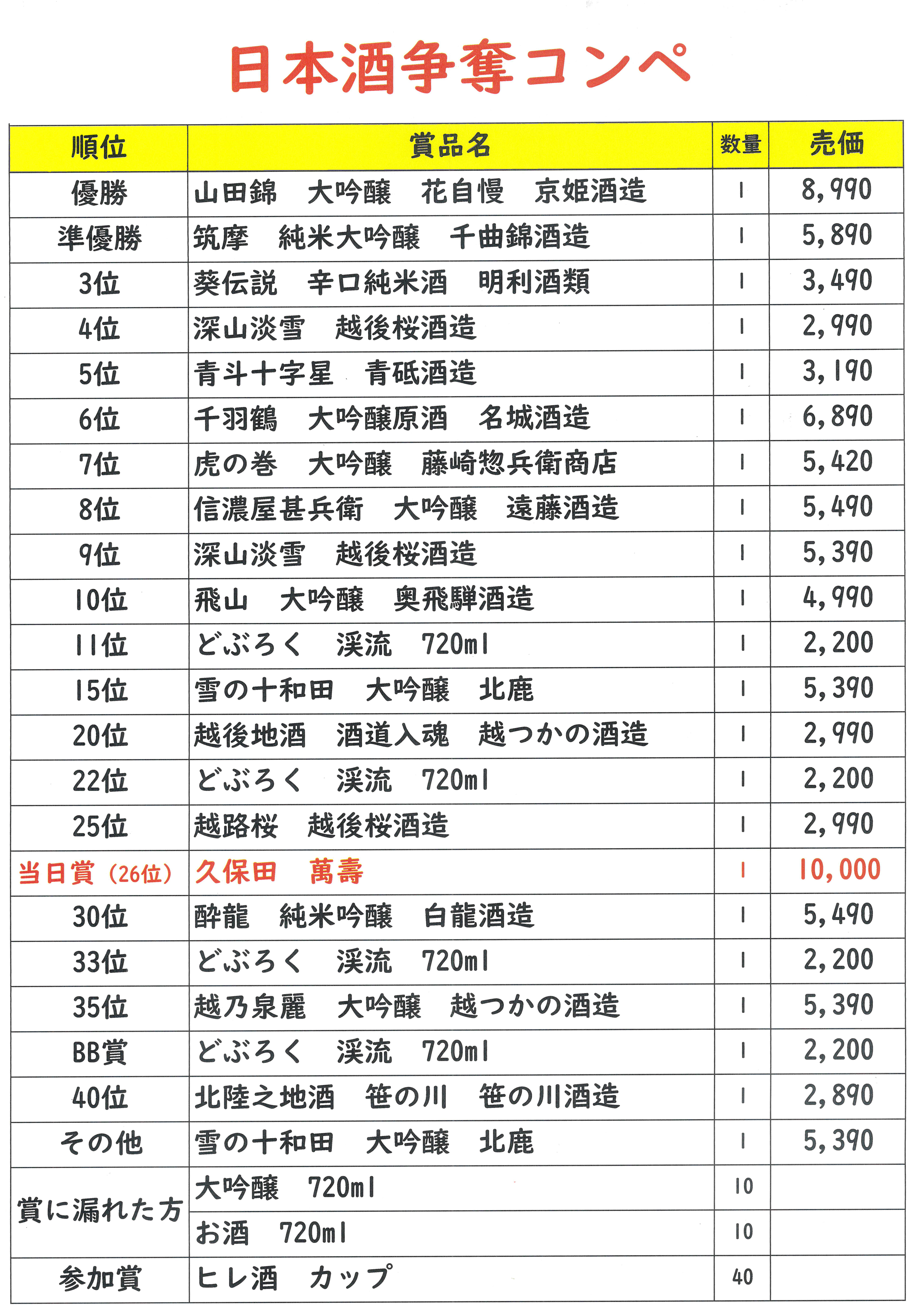 全員に日本酒が当たる『日本酒争奪コンペ』のご案内です。